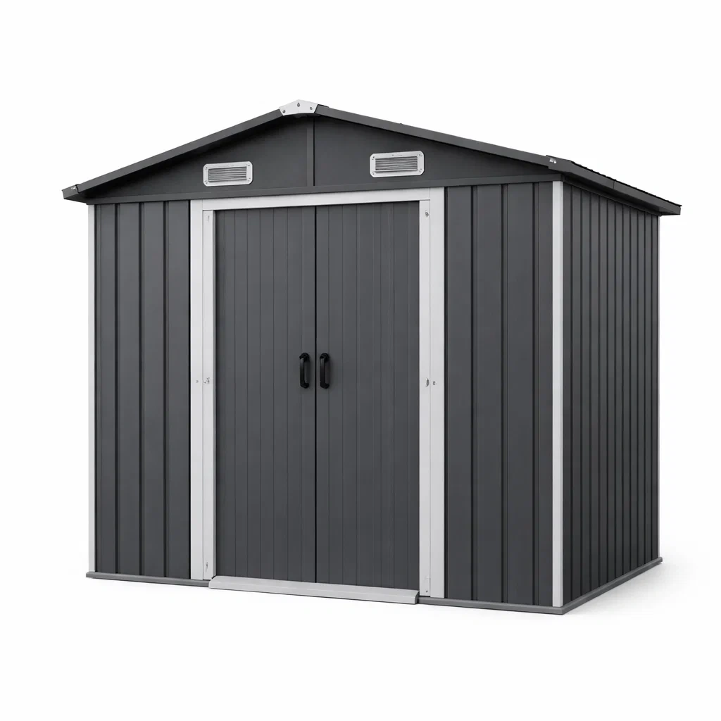 Questo capanno da giardino è realizzato in acciaio zincato, garantendo resistenza alle intemperie e durata nel tempo. Le dimensioni sono 213 cm di lunghezza, 127 cm di larghezza e 185 cm di altezza. Il capanno è di colore Grigio con prese d'aria per una ventilazione ottimale e porte scorrevoli. Ideale per l'utilizzo all'esterno e nello stoccaggio di attrezzi da giardino. Impermeabile e trattato contro la ruggine.