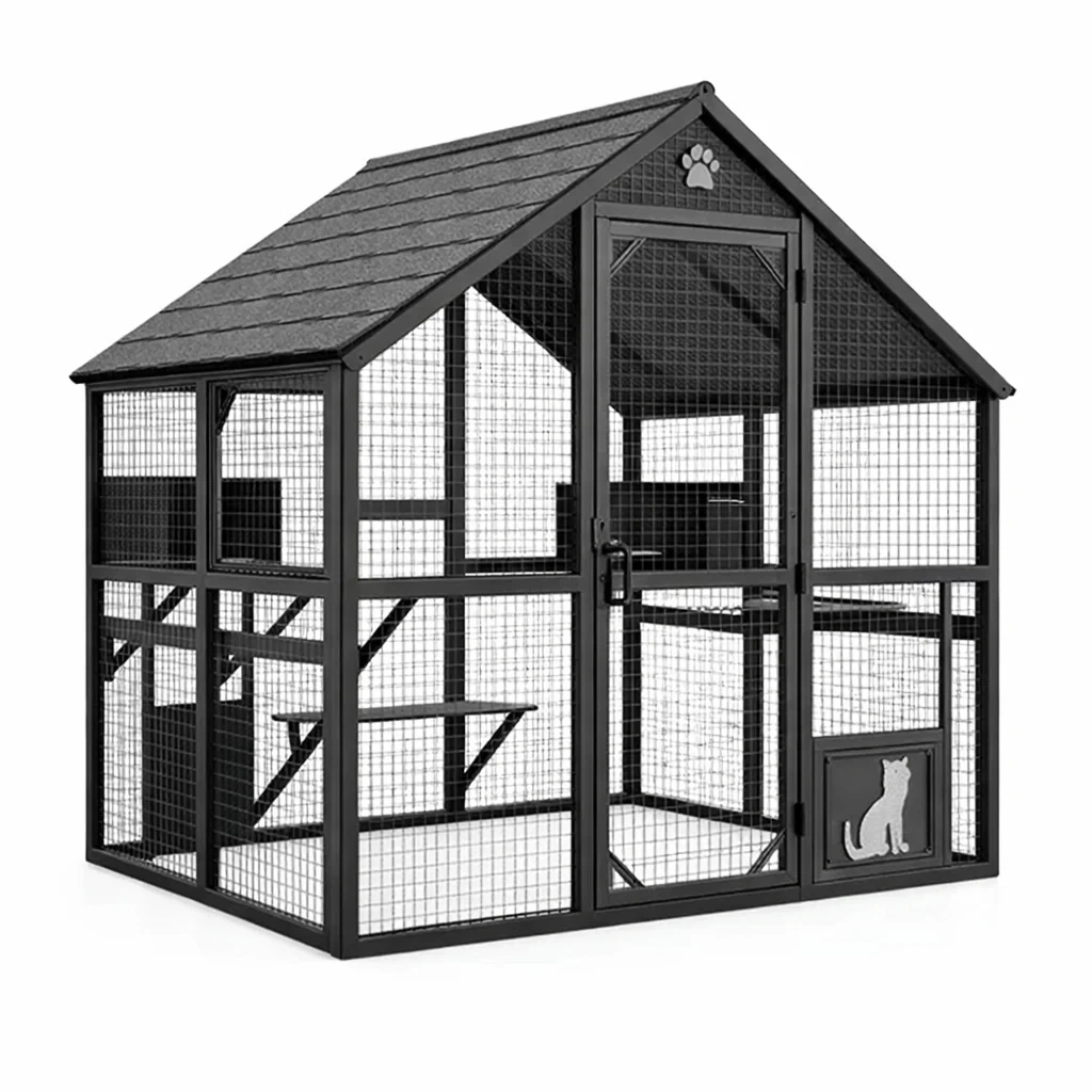 Struttura in metallo con tetto inclinato e pareti a rete per una maggiore visibilità