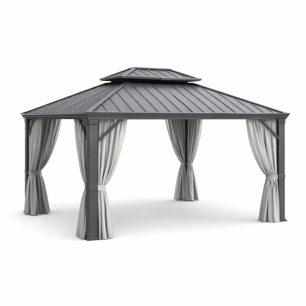 Gazebo in Metallo Grigio con Struttura in Alluminio e Tende in Poliestere