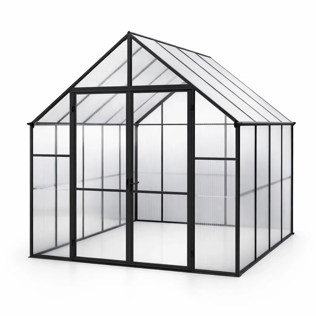 Questa serra presenta un telaio in alluminio resistente e pannelli in policarbonato trasparente da 4 mm di spessore.