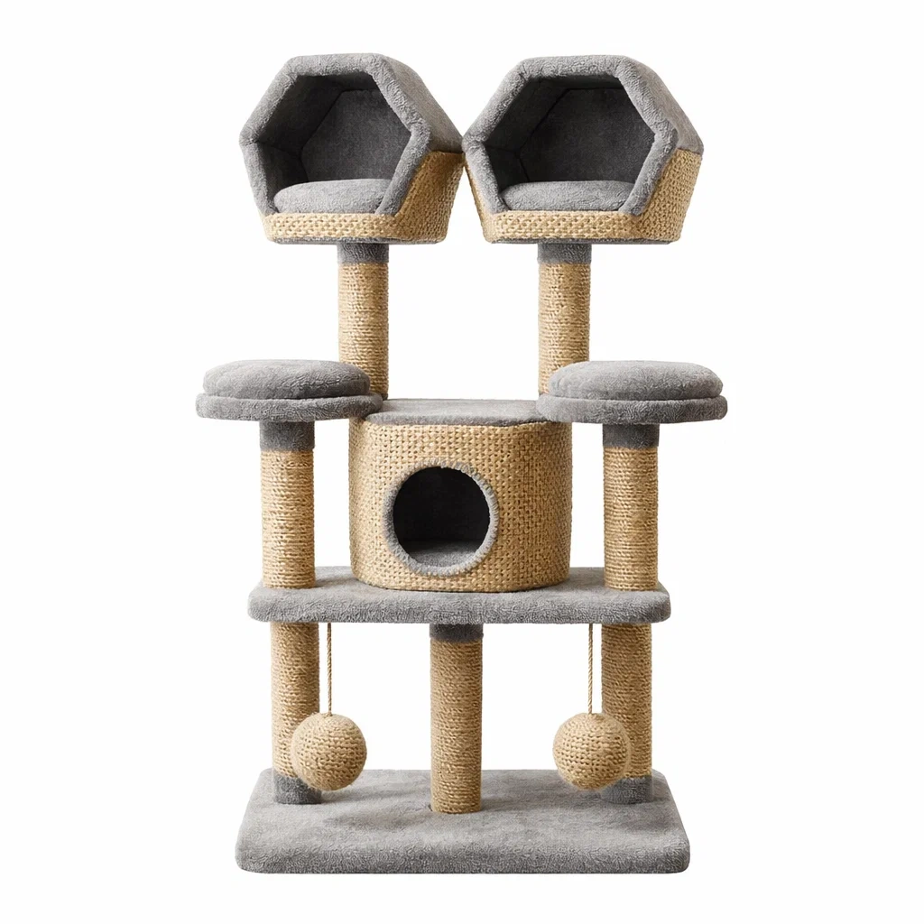 Tiragraffi in Sisal e Poliestere Grigio Beige con 2 Nicchie